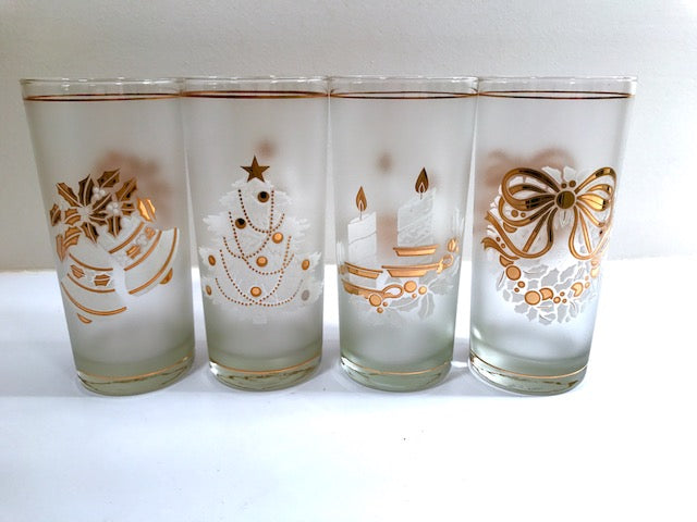 Culver Mid-Century 22-Karat Gold & White Christmas Highball Glasses (Set of 4)