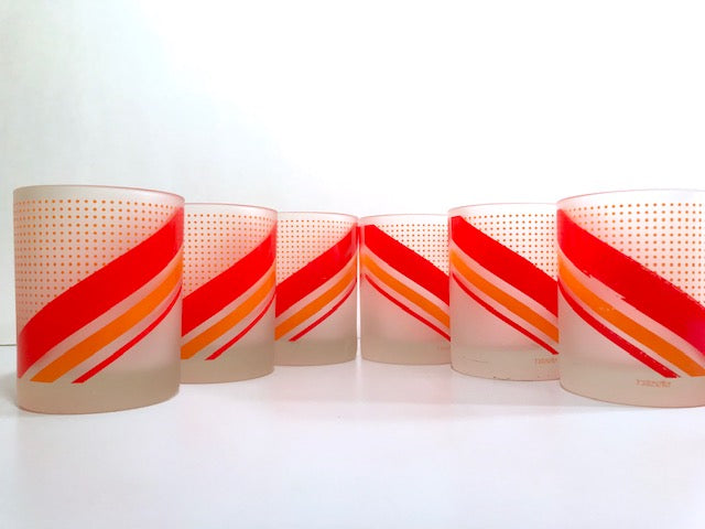 Tastesetter Signed Retro Orange and Red Double Old Fashion Glasses (Set of 6)