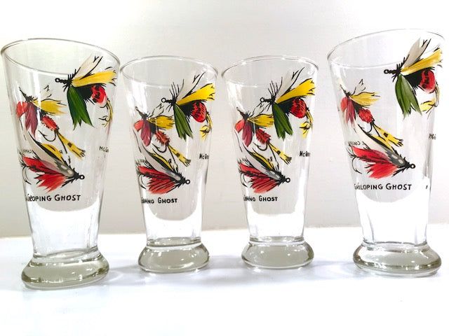 Vintage Fly Fishing Lures Pilsner Glasses (Set of 4)